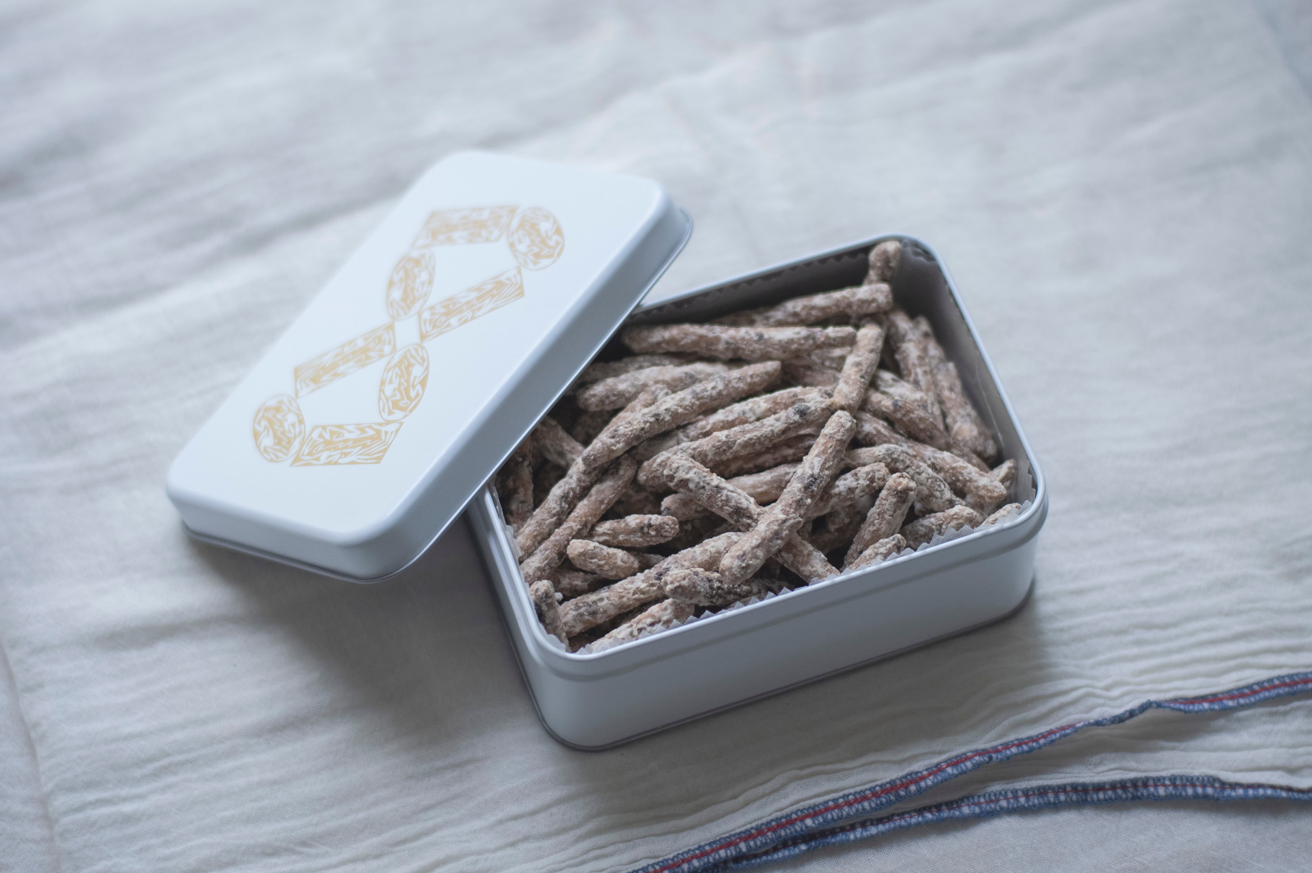 オリジナルのクッキー缶"インフィニティ"は、ouiのロゴをデザインしてくださった吉田勝信さんにつくっていただきました。手元にとって置いていただけるようにと心をこめました。
